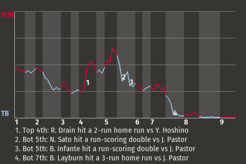 Ellison, who dominated for Boston, earned the victory to move to 7-9. He was in control the whole game, scattering 4 hits over 8 innings, while striking out 8. Tampa Bay batters could never bunch up enough hits to produce a rally.