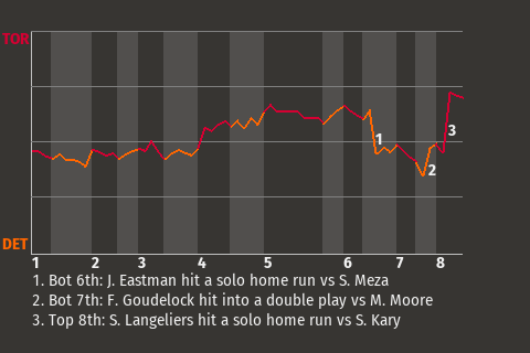 Detroit took a 3-2 lead in the bottom of the eighth inning, when Tulio Reyes hit a clutch 2-run home run to bring Tigers fans to their feet.